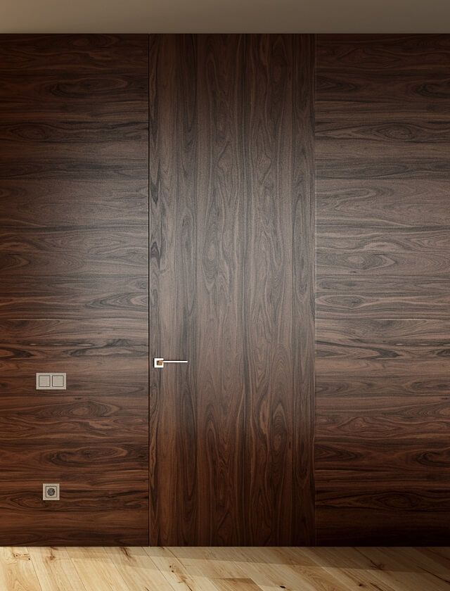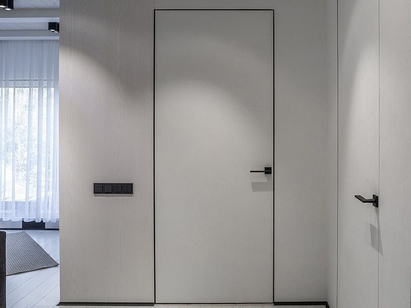 Концепция дверей-невидимок известна много столетий, но активно распространилась в последние пару десятилетий. Полотно, которое сливается со стеной, без видимых выступающих элементов в виде петель или наличников - это хороший способ замаскировать вход в техническое помещение или визуально разгрузить пространство в офисах или прихожих квартир, где в одном месте сосредоточено сразу три-четыре проема.